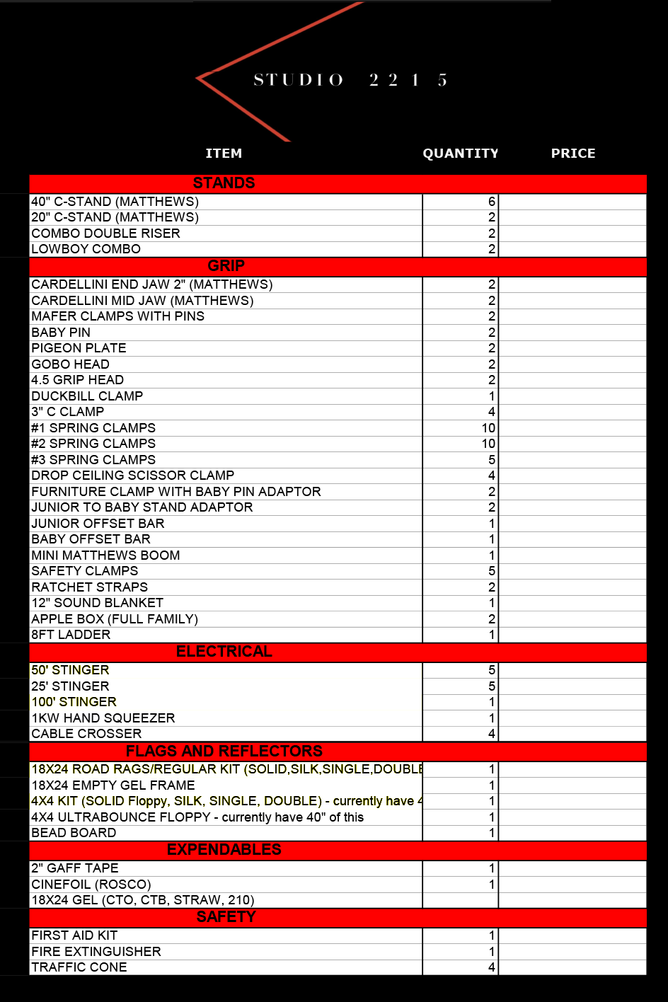 Improve your creative process with our one stop shopping integration of photo and film gear rental services when you book studio space with us. Individual items or group of items can be rented. Our comprehensive offering ensures that your artistic vision is fully supported with top-tier equipment, ranging from high-resolution cameras to versatile lighting setups and professional-grade accessories. Whether you're a seasoned photographer, filmmaker, or content creator, our studio rental package provides everything you need to bring your projects to life. With flexible rental options and knowledgeable staff on hand to assist with equipment setup and troubleshooting, you can focus on capturing your best work in a dynamic studio environment. Experience the synergy of premium studio space and cutting-edge gear, all conveniently available under one roof, to unleash your creativity without limits.